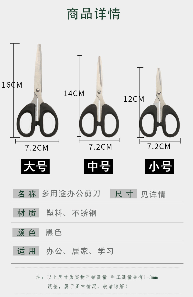 办公用品不锈钢黑色办公小中大剪刀美工手工剪多用途家用剪刀批发