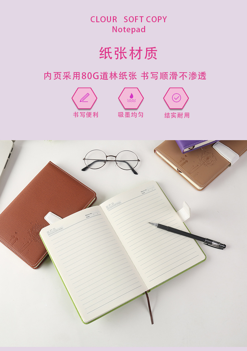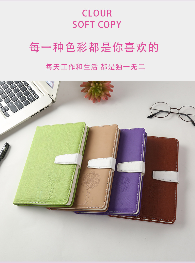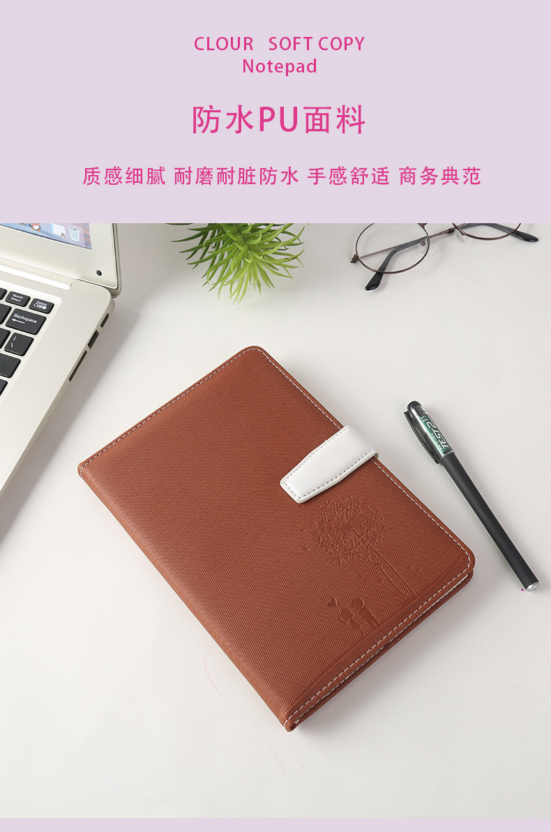 商务办公笔记本A5压花加厚磁扣记事本PU软皮学生文具日记本子